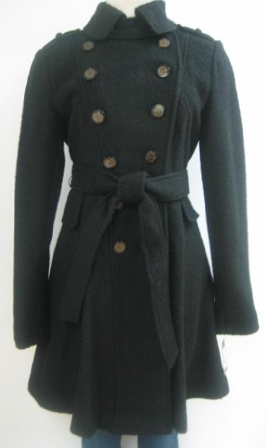 Doble breasted button front closure. Two front slit pockets.Removable tie belt.Great cut gets to a perfect fit.Shell: 47% Wool, 53% PolyesterLinning: 100% PolyesterProfessionally dry clean only!SIZE: SMALLMeasurements: Arm pit to arm pit: 18 inches Shoulder to shoulder: 15 inchesWaist: 16 inches Sleeve: 25 1/4 inches Lenght: 35 inches.../ Guess Belted Wool Coat, Jacket, Black, Small Mh449 / Womans Jackets